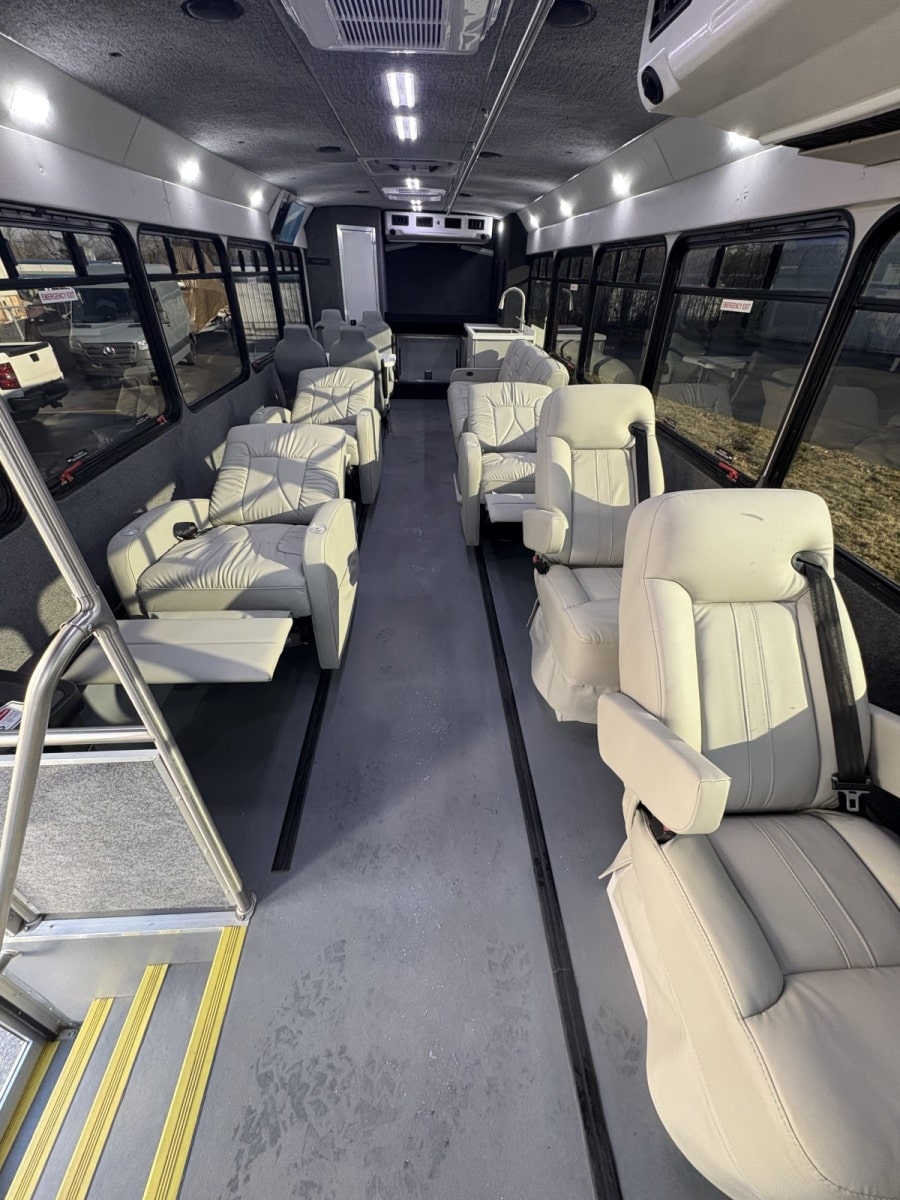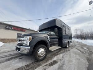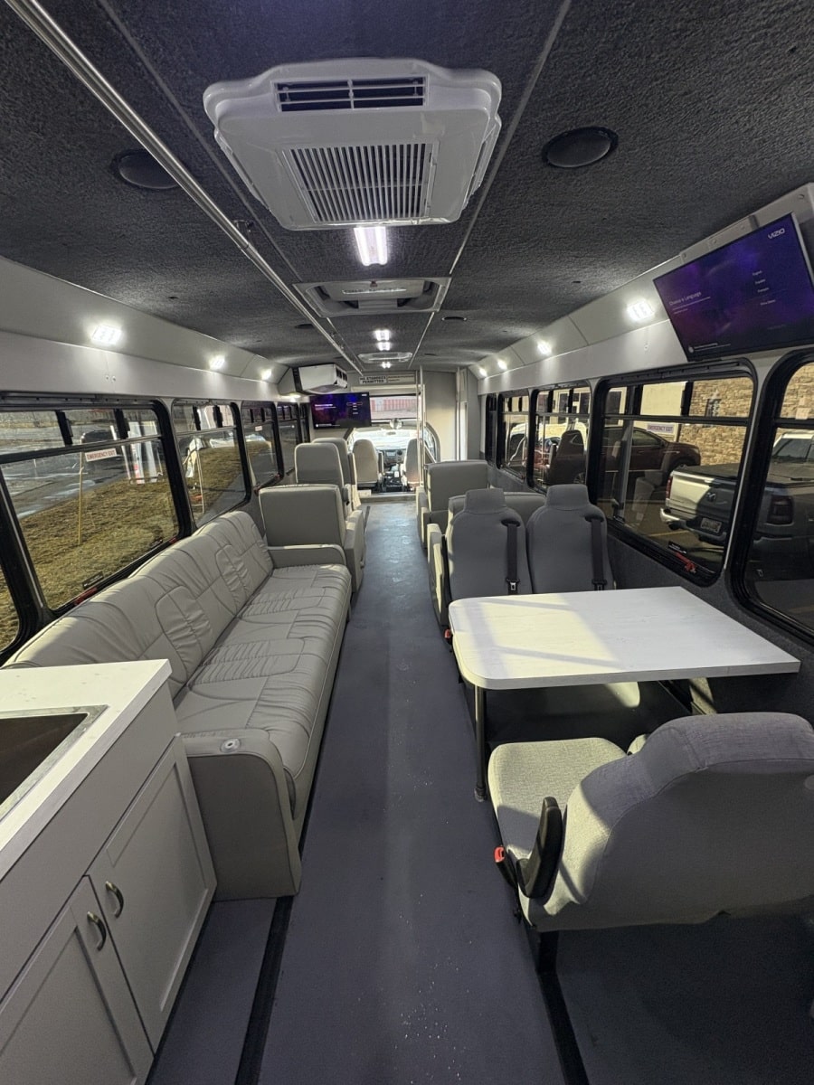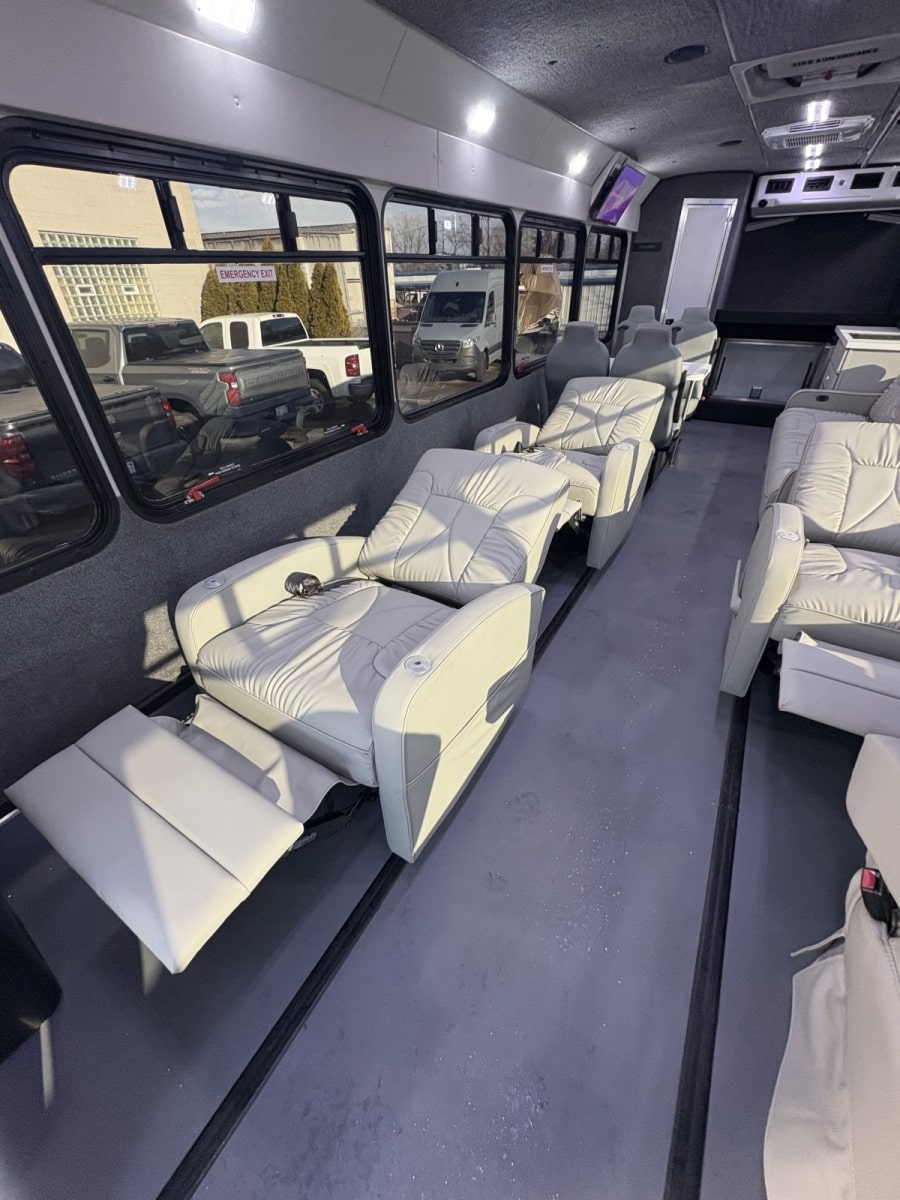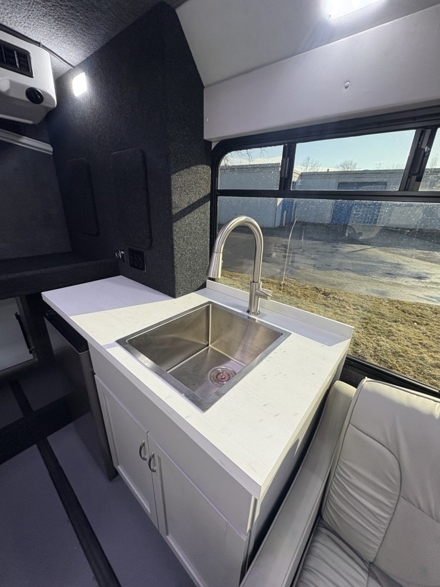 HUUUGE shout out to Divided Find Ranch and Lodge Home to Helicopter Pig Hunting out of San Angelo Texas for purchasing our 2017 F650 and hiring us for an awesome conversion. This unique build feathers a new Onan gas generator and fuel holding tank, a Xantrex power inverter / charger, auxiliary batteries, fuse panel, new 12V system, two rooftop A/C – heaters, plugs throughout, awning, new rear door, storage shelving, sink with countertop and mini fridge, bathroom, kitchen table with seats around it, 2 TV’s, couch with storage compartment and folds into a bed, 2 captain chairs, and 3 swivel chairs.